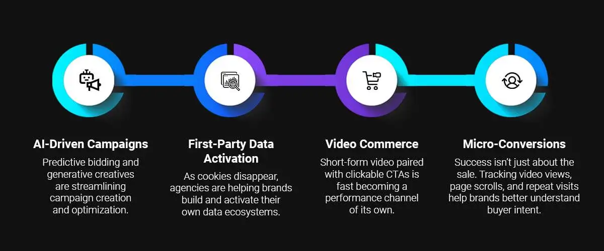 Performance doesn’t live in a silo. Agencies build cohesive campaigns across Google Ads, Meta, LinkedIn, YouTube, programmatic platforms, and influencer channels; ensuring your brand shows up where your audience already is.